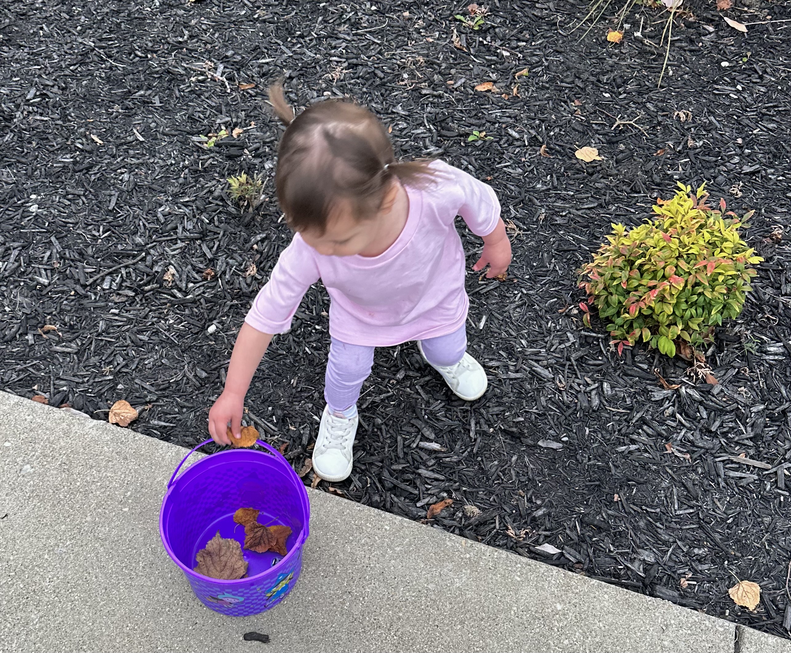 Aubrey, Raul, Merinda and I all took Claire trick-or-treating in her neighborhood! At first she just wanted to fill her bucket with leaves until she discovered that the candy was so much better!