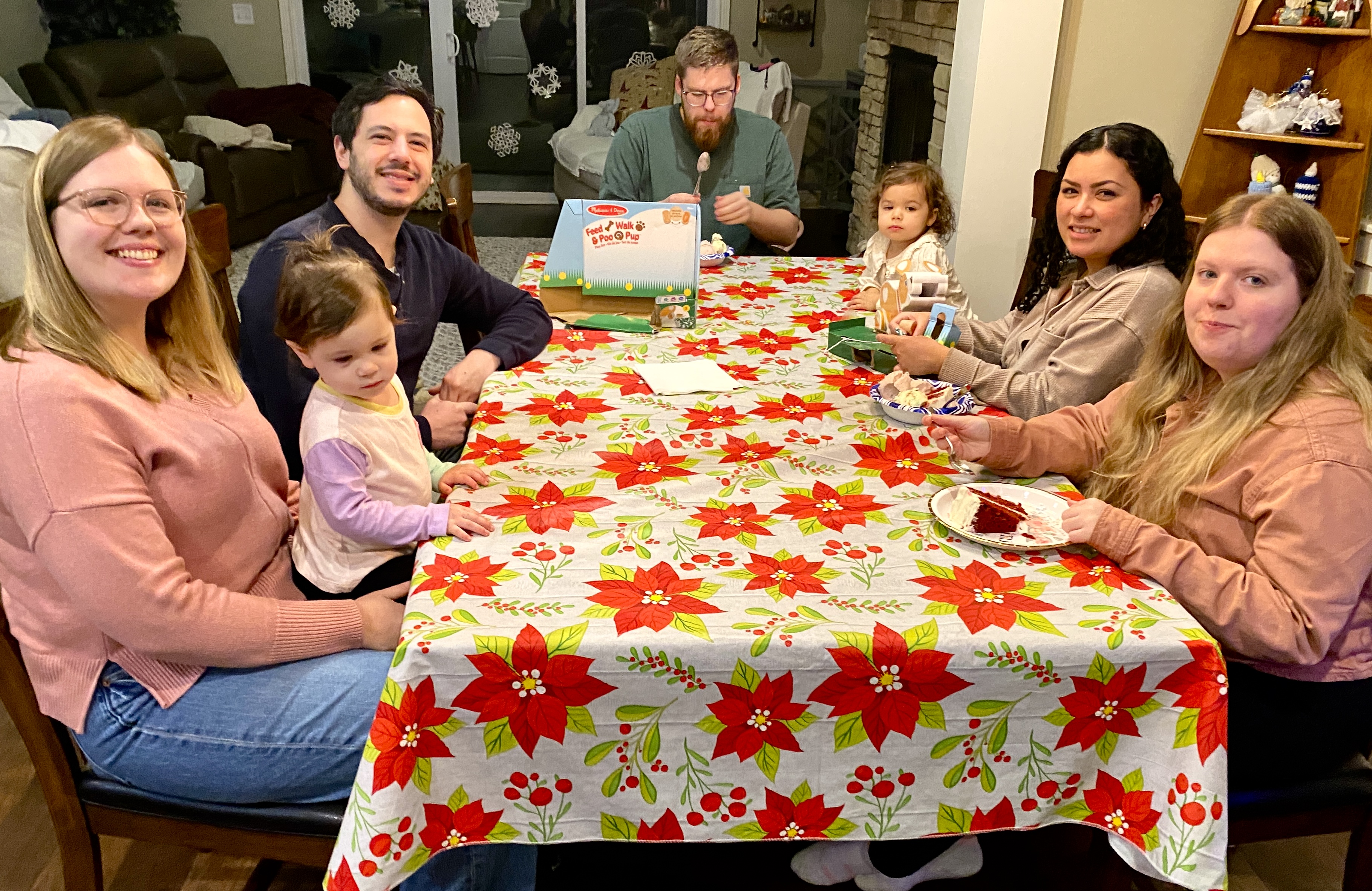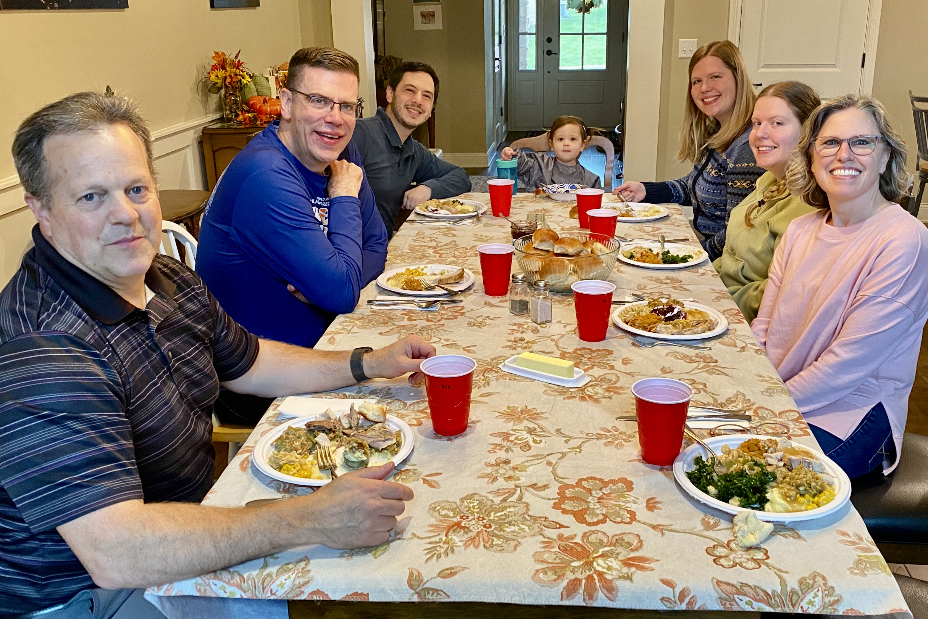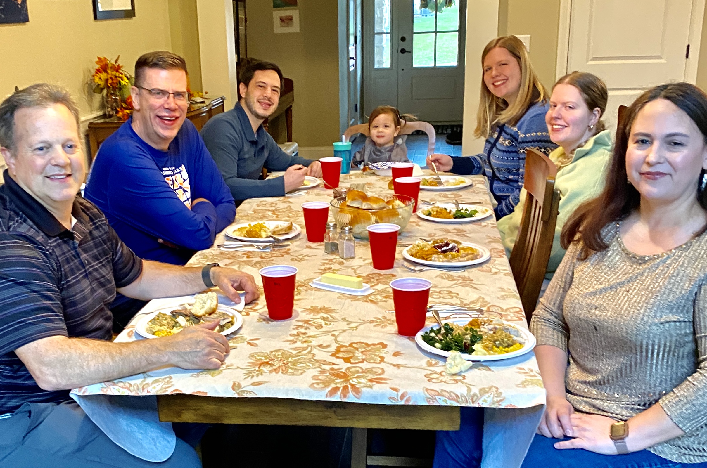 That afternoon we had our Thanksgiving meal with Aubrey & fam, and Rex & Veronica. It worked out great for me because the Holts brought turkey, stuffing, corn, green bean casserole and rolls! We provided salads and potatoes and Aubrey and Raul brought their famous cheesy orzo dish (it's better than mac n'cheese) and sweet potatoes!